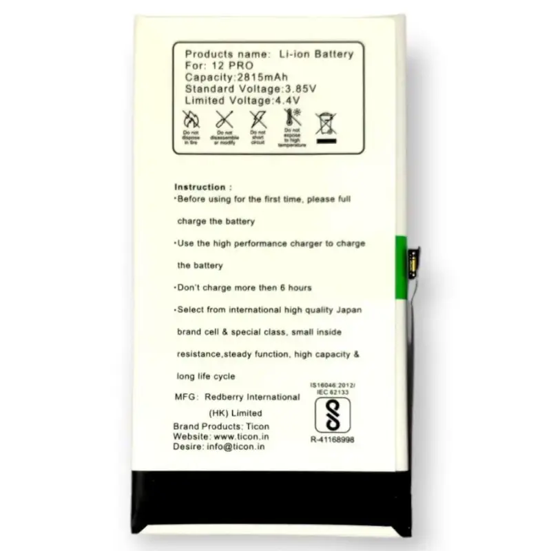 The Apple iPhone 12 Pro boasts a high-performance Ticon Li-ion battery, delivering a robust 4000mAh capacity at 3.85V. Its enduring power ensures prolonged usage, offering reliability and longevity for uninterrupted mobile experiences, making it an ideal companion for those seeking dependable battery life on the go.