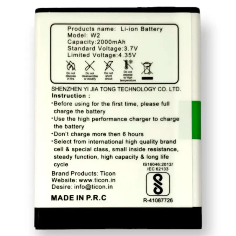 The mobile battery for Lephone W2 is a lithium-ion rechargeable battery with a capacity of approximately 2000mAh. It’s designed to provide reliable power for your Lephone W2 smartphone, ensuring longer usage times between charges. This lightweight and compact battery is a genuine replacement or spare part, offering high-quality performance to keep your device running smoothly throughout the day.