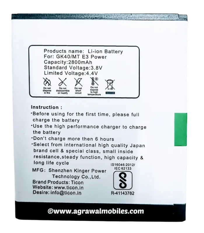 1.Before using for the first time, please charge the battery 2.Use a high performance charger to charge the battery3.Don’t charge more than 6 hours