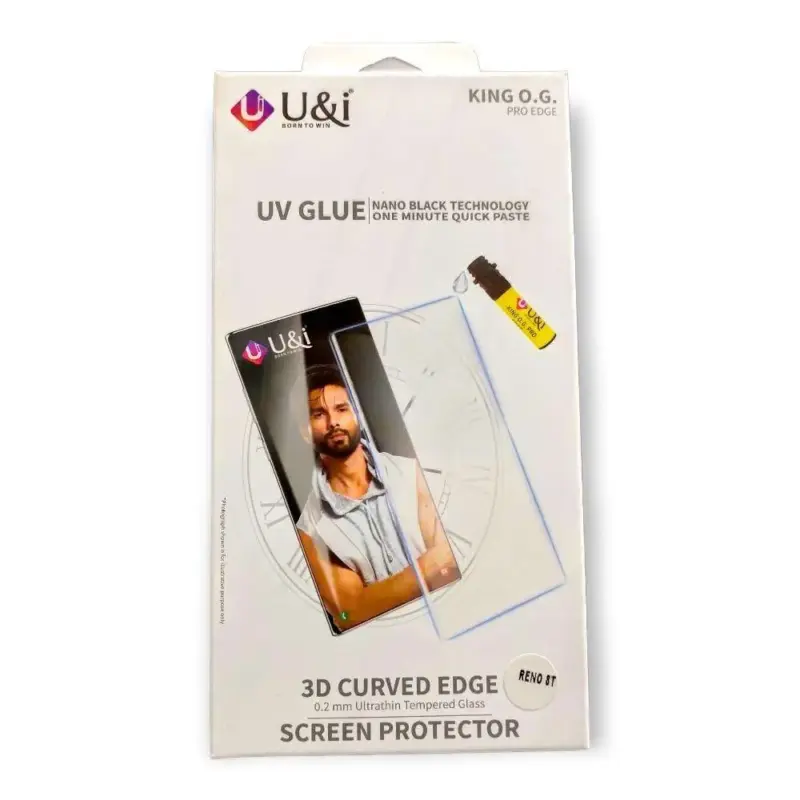 U&i Born To Win King O.G. Glass Pro Edge Tempered Glass Guard For OPPO Reno 8T 5G Tempered Glass With UV Full Glue Mobile Tempered Glass 3D Curved Edge 0.2 mm Ultrathin Tempered Glass Screen Protector